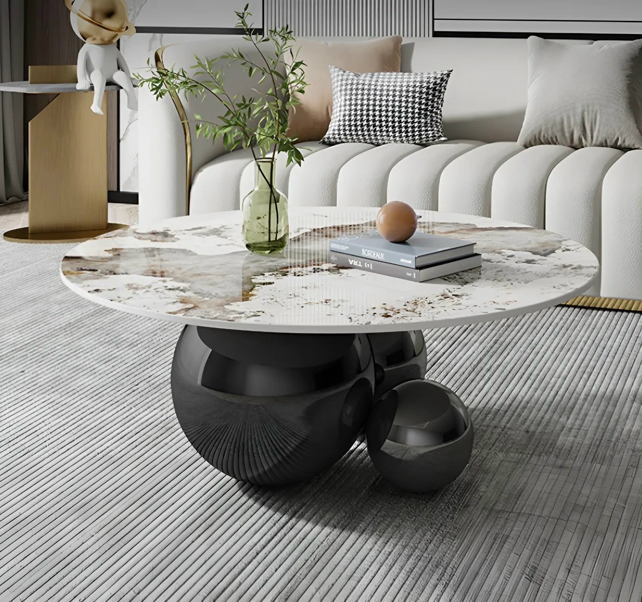 Bàn trà BTI-10 có đường kính từ 70cm đến 90cm, chiều cao 45cm, phù hợp với nhiều không gian từ phòng khách nhỏ đến phòng khách lớn. Thiết kế tinh tế với chân inox mạ vàng, mặt đá ceramic, tạo nên một sản phẩm vừa chắc chắn vừa sang trọng.